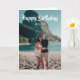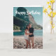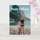 O cartão de saudação de aniversário feliz moderno apresenta uma letra caligráfica manuscrita. Adicione a sua própria foto na frente e a mensagem dentro da placa.