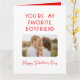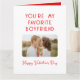 Cartão de Boas Festas do Dia dos Namorados com foto engraçada Você é meu Namorado Favorito apresenta sua foto favorita com o texto "Você é meu namorado favorito, feliz Dia dos Namorados" em tipografia vermelha moderna acentuada com um simples coração de amor vermelho. Adicione seu texto personalizado para personalizar o interior. Acentuado com corações de amor. Presente perfeito para o seu namorado no Dia dos Namorados. Criado por © Evco Holidays www.zazzle.com/store/evcoholidays