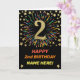Cartão Foto do segundo aniversário Preto e Dourado Arco-Í
