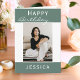 Cartão de Aniversário de Feliz Feliz Foto Teal Moderna. Cartão de aniversário com Parabéns - personalize com seu nome e sua foto. Personalize ou apague o dentro de texto da placa.