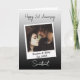 Adicione a sua própria foto a este cartão personalizado de aniversário feliz. Basta carregar sua foto na área personalizar e ela preencherá automaticamente a imagem retrorativa vintage.