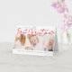 A design na frente consiste na tipografia cursiva lúdica de "Primeiro Natal". Adicione uma foto personalizada do seu novo bebê e adicione o nome do bebê e da família. Este design é moderno, chique, brincalhão e divertido.