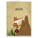 Uma raposa fofa com um sorriso no rosto pedala um alto lado da montanha em um monociclo. Pinheiros são vistos ao fundo enquanto as aves voam no ar. O lado montanhoso tem palavras de encorajamento e de lembrete de que você é mais do que um conquistador. Design original de Christie Black of Creations do Coração.