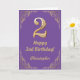 Cartão Frame da Largura Dourada e Roxa do segundo anivers