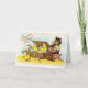 Cartão francês retro/do vintage páscoa. Gatinho adorável que olha um cheio da cesta de espreitadelas e de ovos da páscoa da páscoa! Joyeuses Pâques! Cartão de páscoa francês doce!