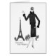 Esta ilustração do vintage vem de um compartimento de forma de 1927 mulheres. Caracteriza uma mulher bonita do art deco no estilo francês dos anos 20, estando antes da torre Eiffel. Você pode personalizar o cartão mudando a cor do fundo assim como o texto interno!