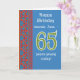 Um 65º Cartão de Aniversário para personalizar, com uma fronteira de Poppies de Campo Escarlate num fundo azul real. Parte da coleção 'Poppy Fields' de Posh & Painterly. Este design ajustado todos os tamanhos da placa de saudação.