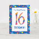 Um brilhante e colorido 16º Cartão de Aniversário para personalizar com sua própria saudação de cobrir frontal, com números riscados e uma borda estrelada, de um design digital de Judy Adamson. Você também pode mudar a mensagem dentro se desejar.