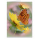 A borboleta-amizade visita flores amarelas da margarida Coreopsis com as cores do jardim ao redor.