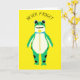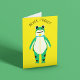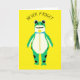 Inspired by protesters in Portland and other cities, I made this illustration of an inflatable frog costume. The illustration is set against a bright yellow background. The NEVER FROGET message on the front and the SENDING SOME HOPPY THOUGHTS YOUR WAY message on the inside can be customized with your own text.