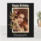 Um cartão de aniversário de fotos personalizado de na moda com uma borda preta decorada com margaridas brancas cor-de-rosa para a foto.