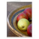 Maçãs vermelhas e amarelas na tigela vintage com efeito impressionista de pincel