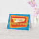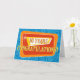 Este é um cartão de 10 anos de aniversário do funcionário em cores ousadas de vermelho, amarelo alaranjado e azul. O padrão de fundo, as formas da caixa de texto, o elemento decorativo e a fonte têm uma vibração retrorreflectora divertida. Cartão Design de Natalie Kinnear