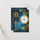 Turquesa, texturizada, fundo steampunk com latão e engrenagens douradas, chave prateada e relógio. Estilo Steampunk.