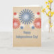 Fogos de artifício e placa de saudação da Hip e da Trendy Funky de 4 de julho com gráficos de fogos vermelhos, brancos e azuis. Esta carta legal é uma maneira maravilhosa de desejar aos amigos e à família um Feliz 4 de julho! Personalize com sua própria saudação e mensagem personalizada! Clique no botão "Personalizar" para alterar/remover texto ou alterar fontes e cores do texto.