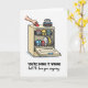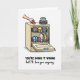 This greeting card shows a beige dishwasher with the bottom rack pulled open, filled with plates and bowls in yellow, red, blue, and white. A light-skinned hand reaches in from above, about to place a bright red computer mouse onto the top rack, which already holds softer, pastel-colored dishes. On top of the dishwasher, there’s a tidy stack of colorful plates that makes the kitchen moment feel familiar. The background is plain white, so the simple shapes and strong colors stand out right away. The hand’s “wrong item in the dishwasher” moment adds a funny, affectionate twist that feels like a real couple or roommate story. The card reads, “YOU’RE DOING IT WRONG but I’ll love you anyway,” with the first part in bold, all-caps handwriting and the second part in a smaller, more casual style beneath it. It’s a sweet reminder that love includes patience, laughter, and a little grace ❤️💌🍫.