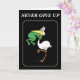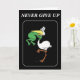 Envie Cartões Motivacionais para Família, Amigos, Co-Trabalhadores ou qualquer pessoa que você queira Inspirar. Este cartão tem o "Nunca desista" com um pelicano engolindo um sapo, mas o sapo tem as mãos à volta da garganta dos sapos.