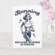 Searching for the perfect combination of running humor and a retro aesthetic? This funny running greeting card features a bold, vintage-style illustration of a determined female runner with the hilarious and dark-humor slogan, "Running Because Murder Is Wrong." It’s the ultimate way to send a laugh to the jogger or marathoner in your life who uses the pavement as their personal therapy session.