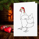 Traga um pouco de alegria de Natal para a época festiva com este cartão de boas-vindas da dança festiva de frango de Natal Engraçado. Um frango giro e esquisito desenhando em uma simples linha preta vestindo um chapéu de Natal engraçado em vermelho e creme. Adicione uma cor de fundo ao engraçado cartão de Natal do Natal e adicione sua própria mensagem usando o botão personalizar e você tem o dom festivo perfeito para amantes de animais e frangos. Ilustração de arte original de frango de fazenda Quirky por Catherine Sweetman