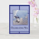 Reflexão das nuvens, do céu azul, e da garça-real de grande azul que anda na água. Cartão bonito para o homem ou a fêmea "que comemoram o". Você pode suprimir da imagem do texto "que comemora o" e personalizá-la com sua própria mensagem. O interior do texto ligada está os modelos que podem ser personalizados por você.