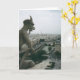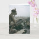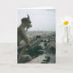 Gárgula sobre Notre Dame em Paris, France. Seine River e torre Eiffel no fundo.