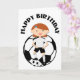 Um design de futebol fofo para o fã ou jogador de futebol, com uma garota de futebol em um uniforme de futebol preto e branco segurando uma bola de futebol. A jovem estrela de futebol está em frente a uma grande bola de futebol preto e branco. Perfeito para um presente de aniversário ou um favor de festa. O Soccer Boy e outras cores do time disponíveis. Se você quiser uma combinação de cores diferente, entre em contato conosco através da loja CelebrationBazaar.