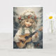 Esta ilustração assistida por IA de uma menina bonita tocando violão é perfeita para um cartão de saudação de Natal. Você sabia que pode reciclar suas cartas de saudação acrescentando um quadro e pendurando-as como miniatura? Eles fazem decoração estética de excelente feriado em casa. Imagem assistida por IA adquirida com uso comercial. Trabalho de arte: RavenPrintableDesign