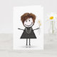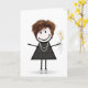 Bonita figura de palito com cabelo, vestido de bolinhas, colar de pérolas, tênis, e segurando um buquê margarida. O fundo branco pode ser alterado.