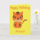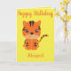 Um cartão de boas-vindas para uma garotinha, este design apresenta um tigre fofo. "Feliz aniversário" está escrito em tinta laranja cursiva com seu nome no fundo. Na dentro é uma mensagem adorável. Escolha o seu hoje! Clipart: design Prettygrafik (https://www.etsy.com/shop/Prettygrafikdesign)