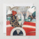 Cartão Garota e Cachorro num Automóvel Vermelho