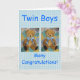 Dois ursinhos bonitos com arcos azuis no fundo do gingham e o texto Twin Boys Muitos Parabéns!