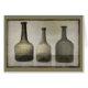 Arte russa, ainda viva com 3 garrafas antigas em tons sujos de verde e marrom.
