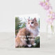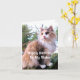 Este cartão de aniversário para sua irmã que ama gatos apresenta um lindo gato calico de pelo longo sentado em um toco de árvore no outono. As cores do gato são butterscotch, cinza e branco. Na frente, o texto diz: "Feliz Aniversário à Minha Irmã".