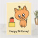 Uma imagem doce dos desenhos animados de um gato alaranjado do gengibre pequeno em um chapéu do aniversário que senta-se ao lado de alguns presentes de aniversário.