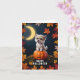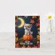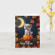 Cartão Gatinho Fofo em uma Abóbora com Folhas de Outono