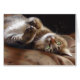 Foto de pintura de óleo da Abissínia, reclinando-se em uma cama pronta para jogar. Lindos olhos verdes claros. Cartão de nota perfeito para um amante de gato, as cores predominantes são castanhos e bronzeadas sobre um fundo preto, foto pintada para simular óleo.