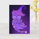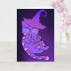 Cartão Gatinho roxo e bonito com chapéu de bruxa
