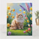 Cartão Gato Angorá Turco Pintura Flores de Primavera