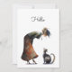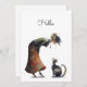 Um gato fofo e uma senhora compartilham um "Olá" neste cartão branco. Todo o texto pode ser alterado para sua saudação preferida. Imagem assistida por IA adquirida com uso comercial. Trabalho de arte: RedHeronLighthouse