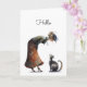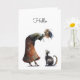 Um gato fofo e uma senhora compartilham um "Olá" neste cartão branco. Todo o texto pode ser alterado para sua saudação preferida. Imagem assistida por IA adquirida com uso comercial. Trabalho de arte: RedHeronLighthouse