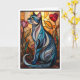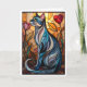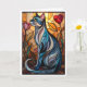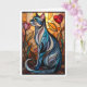 Cartão Gato cinza em estilo de vitral com flores