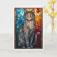 Cartão Gato Cinza no Estilo de Vitral