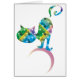 Adorável gato polca pontilhado balançando precariamente numa lua crescente. Uma ilustração de arte digital personalizada. Colorida e divertida.
