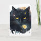 Cartão Gato Cósmico em Aquarela Preta com Olhos Amarelos