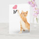 Dourado gato com balão de coração cor-de-rosa para 14 de aniversário em fundo branco. A cor de fundo pode ser alterada.
