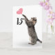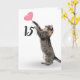 Cinza por gato com balão de coração cor-de-rosa para 15 de aniversário em fundo branco. A cor de fundo pode ser alterada