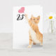Dourado gato com balão de coração cor-de-rosa para 25 de aniversário em fundo branco. A cor do plano de fundo pode ser alterada.