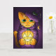 Cartão Gato de Bruxas de Halloween Roxo