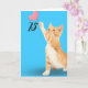 Dourado gato com balão de coração cor-de-rosa para 75 anos em fundo de turquesa. A cor de fundo pode ser alterada.