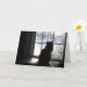 Grande carta com a imagem de um gato preto olhando pela janela numa cena de neve bastante intensa em Delaware County PA